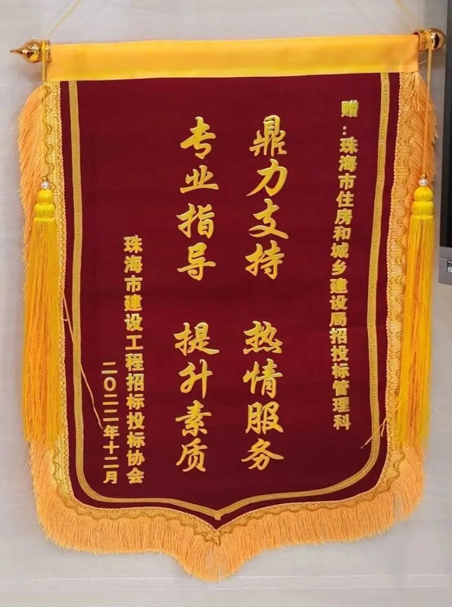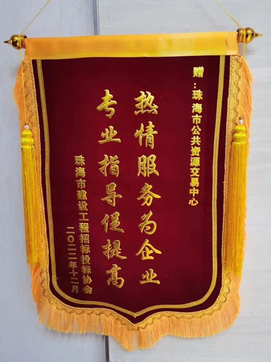 送上一面寫(xiě)著(zhù)“鼎力支持 熱情服務(wù) 專(zhuān)業(yè)指導 提升素質(zhì)”、另一面寫(xiě)著(zhù)“熱情服務(wù)為企業(yè) 專(zhuān)業(yè)指導促提高”的錦旗和感謝信到部門(mén)負責人手中。感謝兩部門(mén)全體工作人員一年來(lái)對協(xié)會(huì )工作的鼎力支持和專(zhuān)業(yè)指導,尤其是協(xié)會(huì )在舉辦“珠海市建設工程招標投標協(xié)會(huì )會(huì )員單位業(yè)務(wù)知識交流座談會(huì )”時(shí)得到兩部門(mén)的鼎力支持,從籌備到開(kāi)會(huì ),不但給予專(zhuān)業(yè)指導,還派出經(jīng)驗豐富的干部進(jìn)行相關(guān)業(yè)務(wù)指導。